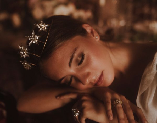 En los jardines de un palacio descubrimos una novia sublime que juega a imaginar cómo será el día de su boda. Como una niña, que tantas veces había fantaseado con este día, nos guía por los sus exteriores para mostrarnos cada uno de sus rincones. Nos invita a pasar dentro, llevándonos de su mano mientras descubrimos los vestidos de sus sueños. Una única novia, un único amor verdadero, pero nueve vestidos con los que dejar volar la imaginación. Perdida entre sus sueños, nos muestra esa boda ideal con la que toda novia sueña.